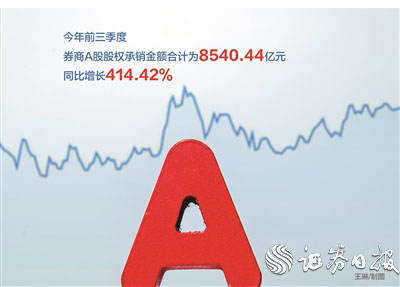 Wind资讯数据显示,按发行日统计,前三季度,券商A股股权承销金额合计为8540.44亿元,同比增长414.42%。这一显著增长主要得益于定增募集资金的显著增加,融资规模达7322.62亿元,为券商股权承销规模的攀升提供了有力支撑。